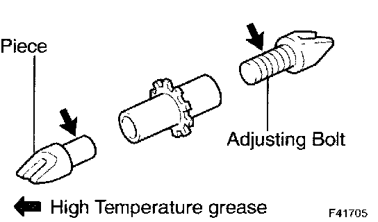 a. Apply high temperature grease to the parking brake shoe adjusting bolt and piece.