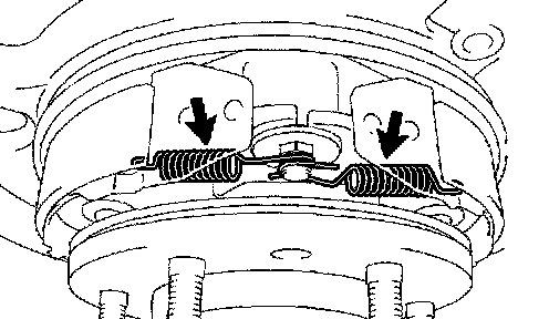 NOTICE: There should be no oil or grease on the friction surface of the shoe lining and disc.