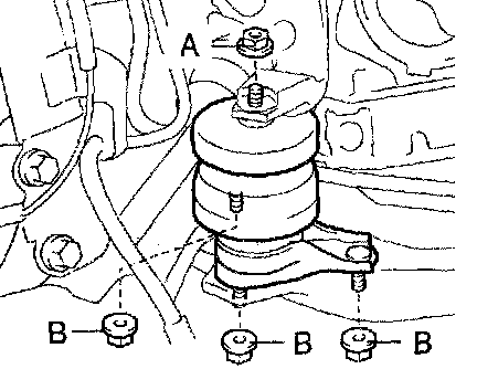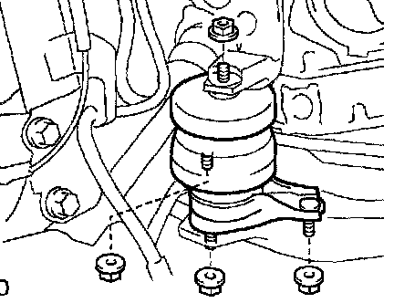 d. Jack-up the engine and remove the engine mounting insulator RH.