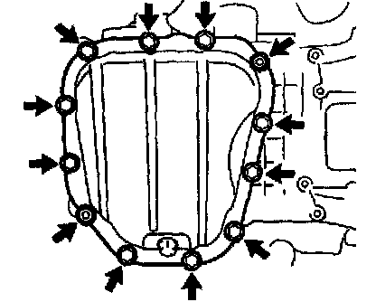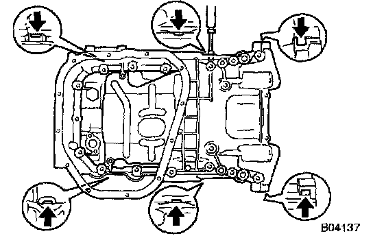 ^ Install the oil pan within 3 minutes after applying seal packing.