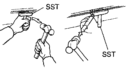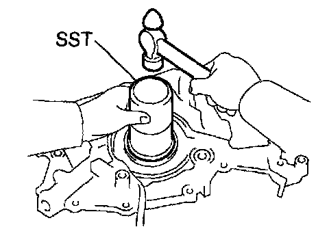 a. Using SST and a hammer, tap in a new oil seal until its surface is flush with the oil pump body edge.