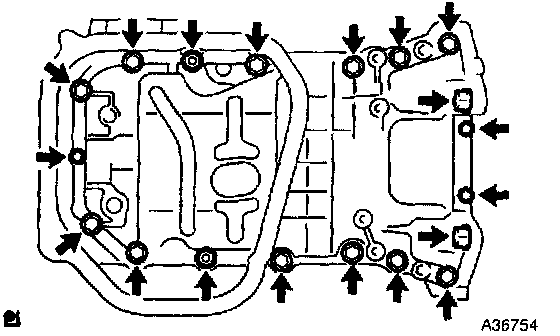 c. Install the oil pan No.1 with the 17 bolts and 2 nuts. Tighten the bolts uniformly in several steps.