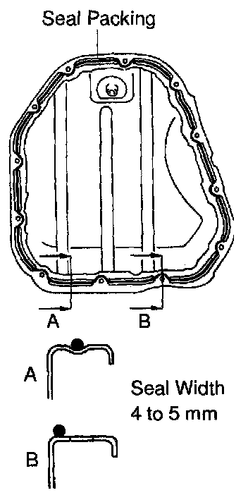 b. Apply a continuous bead of seal packing (Diameter 4 to 5 mm (0.16 to 0.20 inch)) as shown in the illustration.