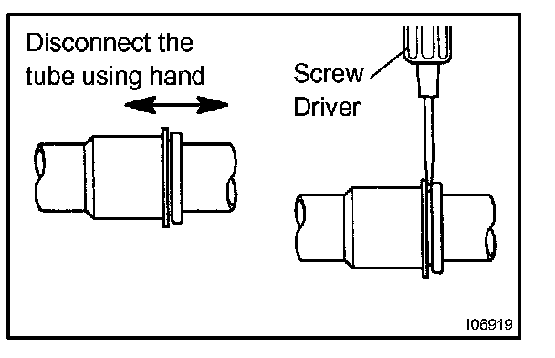 HINT: Disconnection of the cooler refrigerant suction hose No.1 is same as the liquid tube sub-assy.