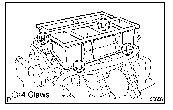 b. Release the 4 claw fittings and remove the air duct sub-assy.