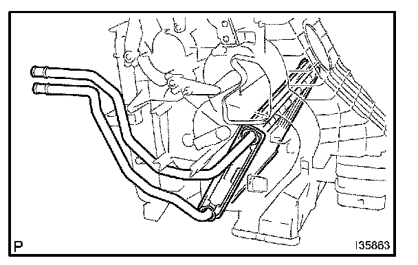 HINT: Disconnection of the heater water inlet hose is same as the heater outlet water hose.
