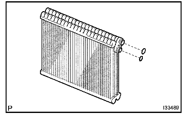 b. Install the 2 O-rings on the cooler evaporator sub-assy No.1.