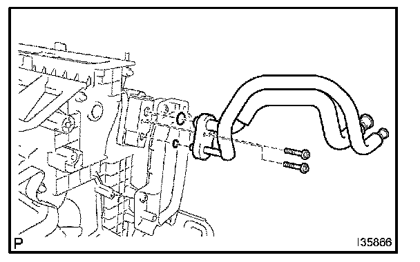 b. Using a hexagon wrench 4.0 mm (0.15 in.), remove the 2 hexagon bolts and air conditioning tube assy.