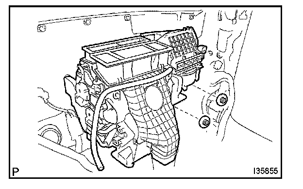 HINT: Make sure to keep the air conditioner unit assy unmoved as the installation parts of the bracket in the air conditioner unit assy could be damaged.