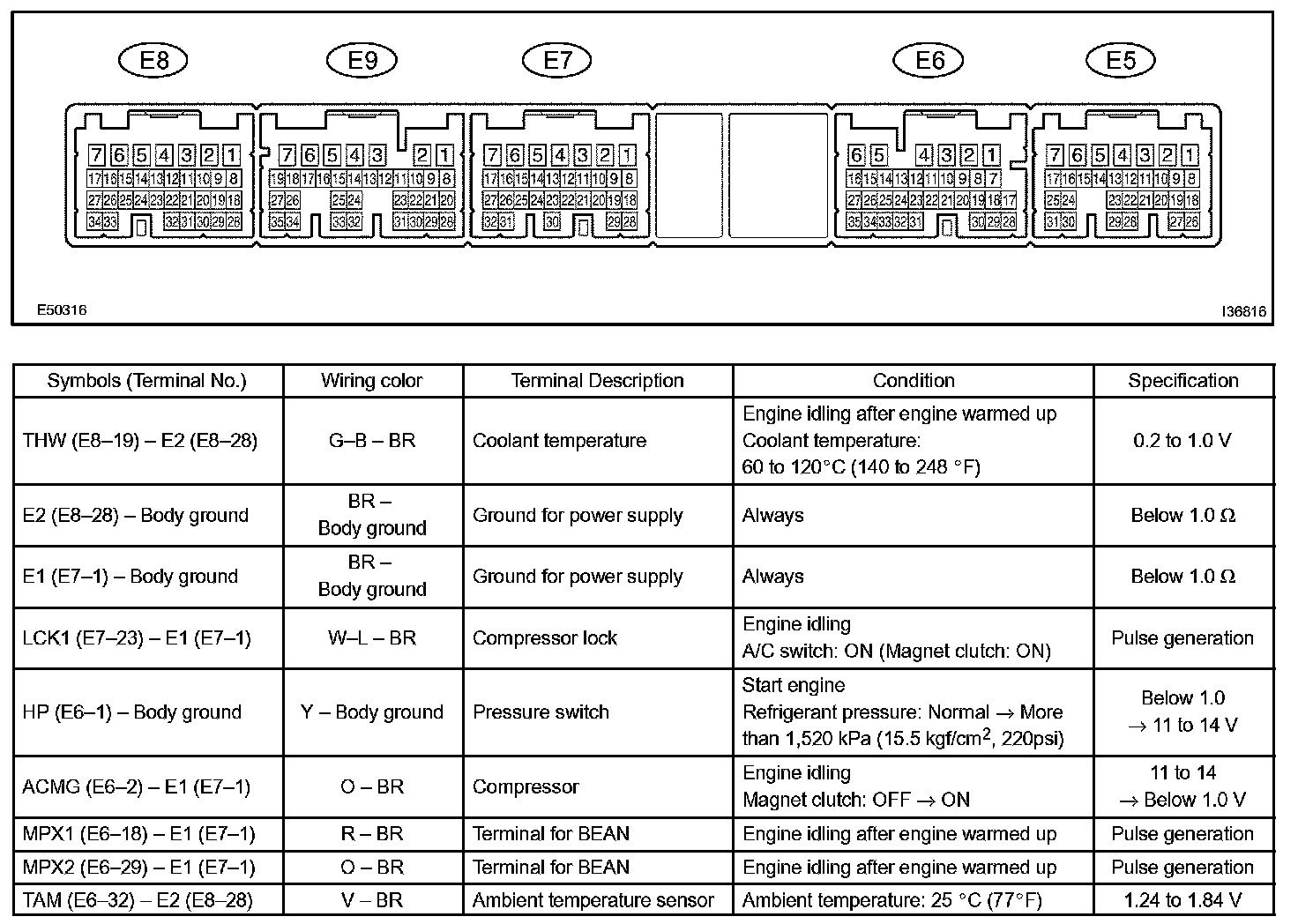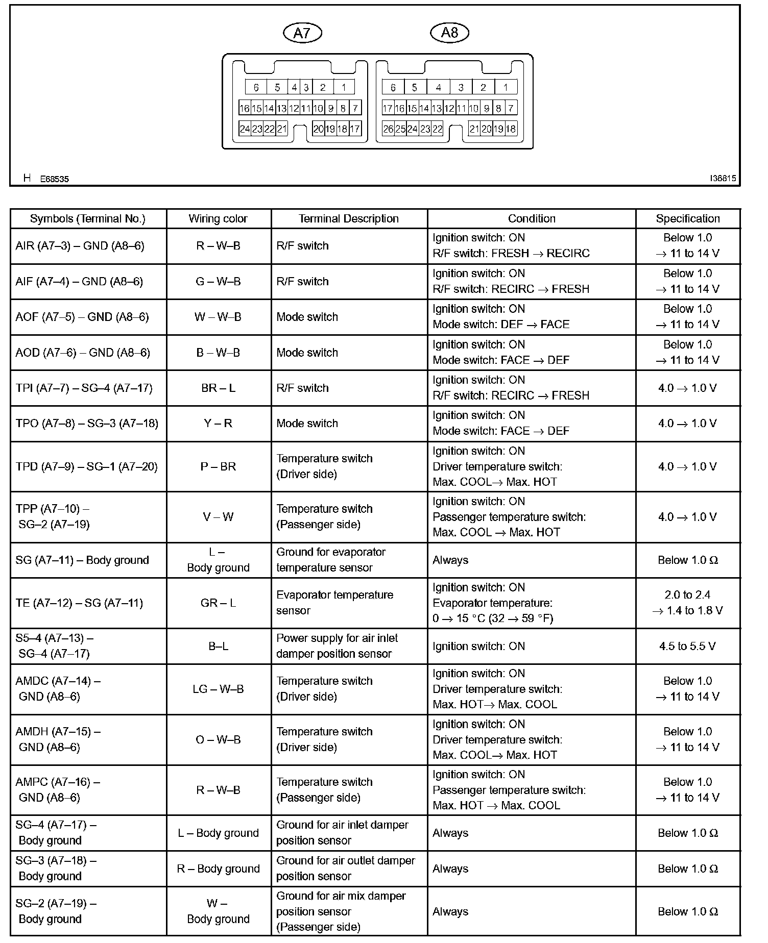 Terminals Of ECU/Pinouts - Air Conditioning Amplifier Part 2: