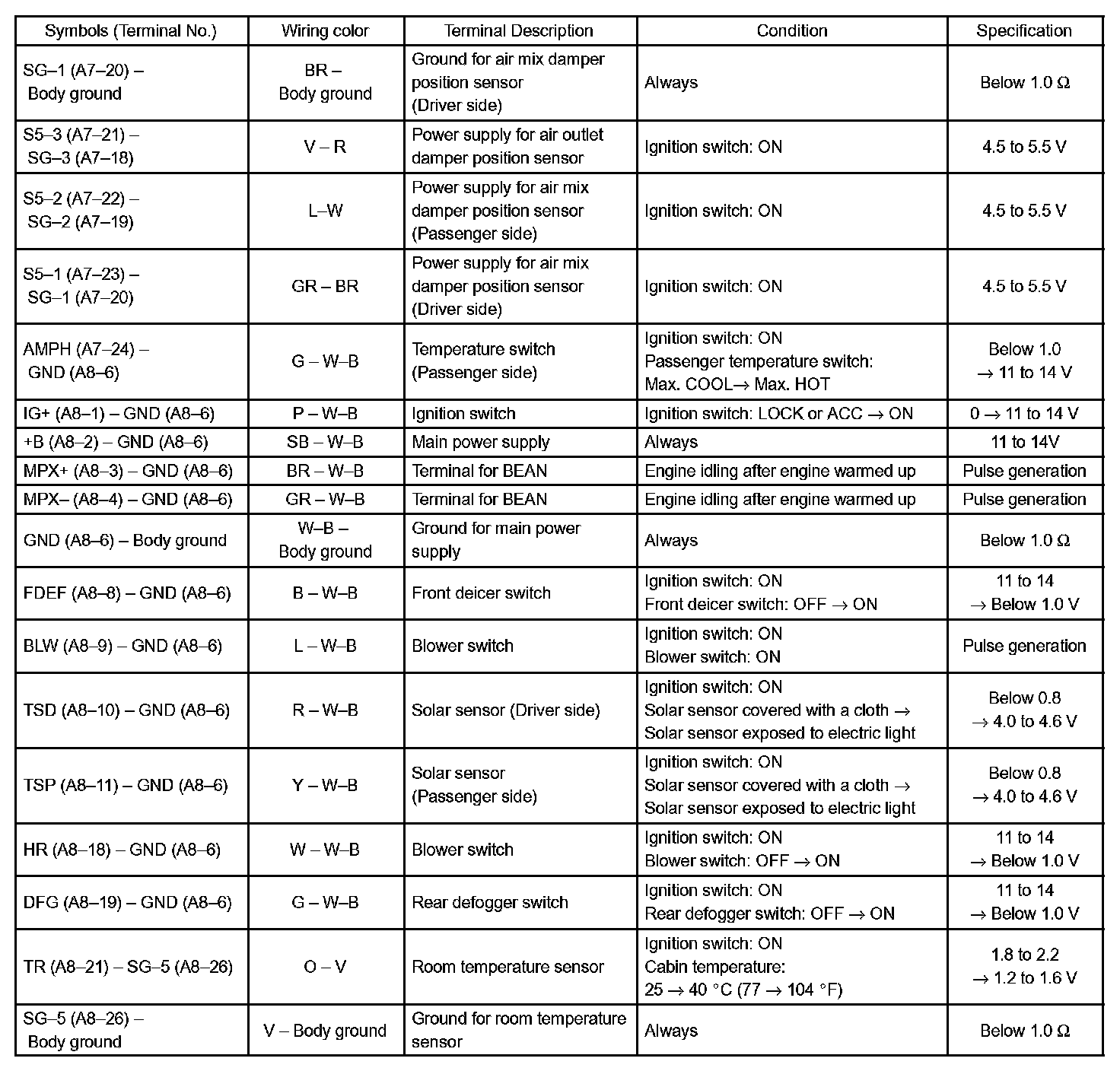 TERMINALS OF ECUTerminals Of ECU/Pinouts - Air Conditioning Amplifier Part 1:
