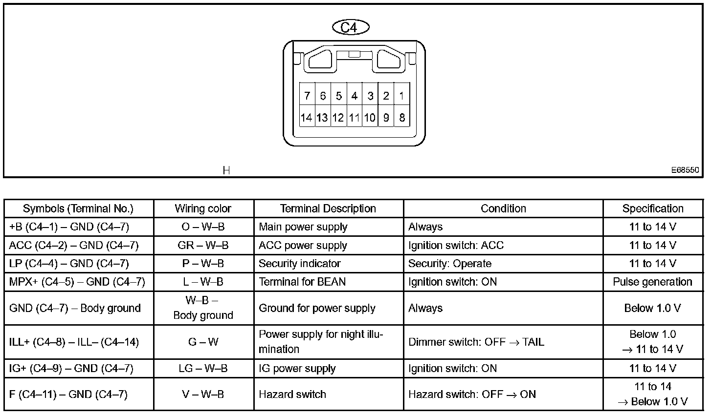 Terminals Of ECU/Pinouts - Multi-Display Assy Part 2: