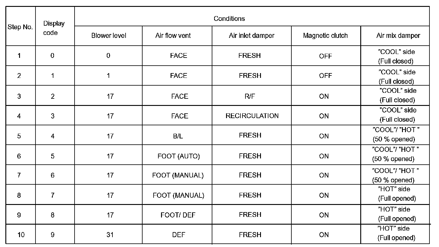 b. At each damper, the motor and relay automatically operate the actuator check at 1 second intervals from step No.1 to No.10 continuously, check the temperature and air flow from visually and by hand.
