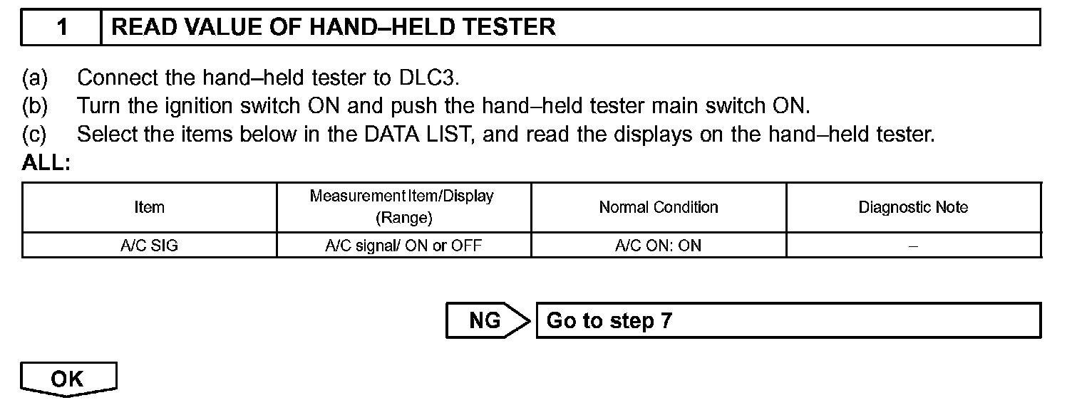HINT: When using the hand-held tester, start inspection step 1 and when not using the hand-held tester, start from step 3.