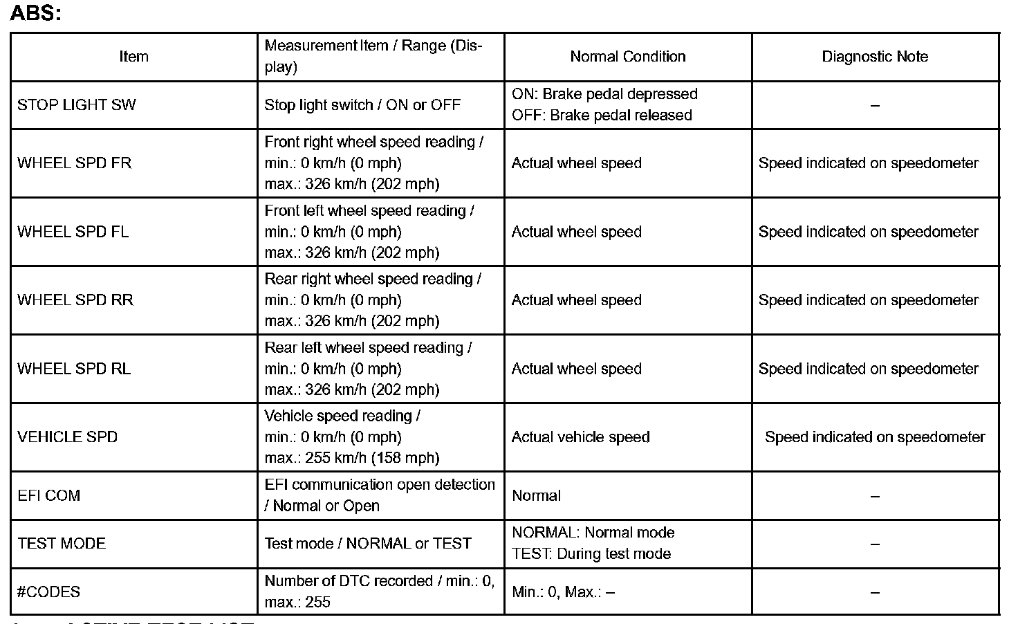 DATA LISTHINT: By accessing the ABS DATA LIST displayed by the hand-held tester, you can read the value of the switches and sensors without removing any parts. Reading the DATA LIST is the first step of troubleshooting is one method to shorten labor time.