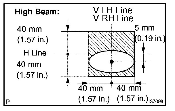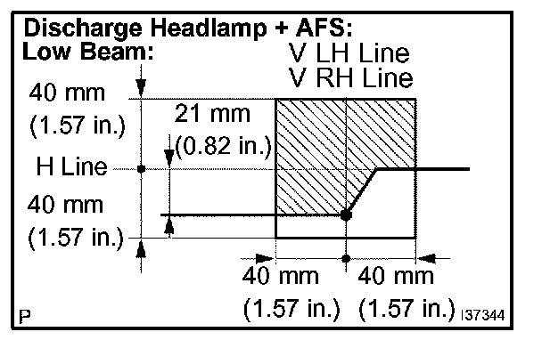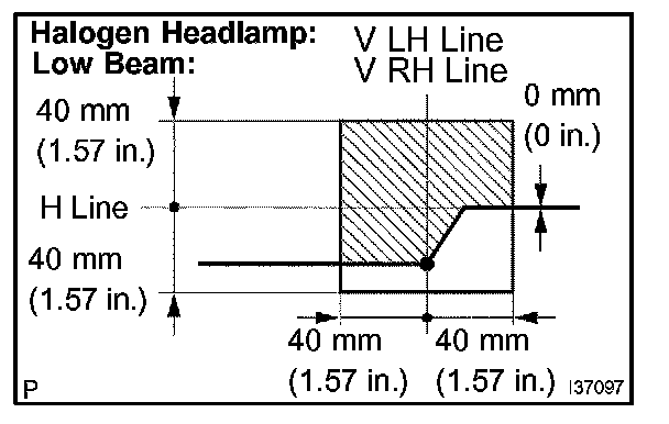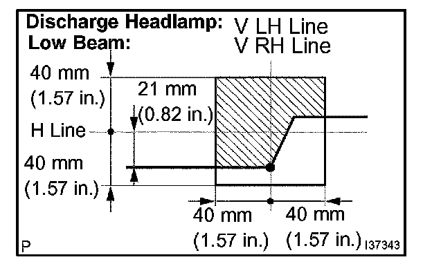 3. Turn on the headlights and check that the aim is with in the specified valves shown in the illustration.