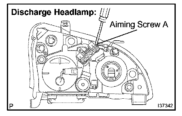 - Adjust the headlight aim by turning the screw in the tightening direction.
