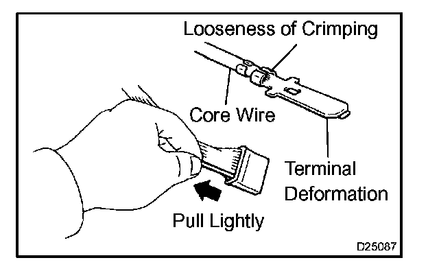 Check by lightly pulling the wire harness (missing terminal, terminal crimping condition, core wire break).
