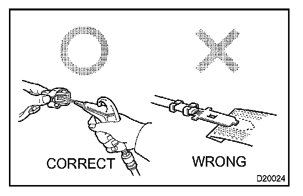 5. When checking the connector with a Toyota electrical tester, check it from the backside (harness side) of the connector using a mini test lead.