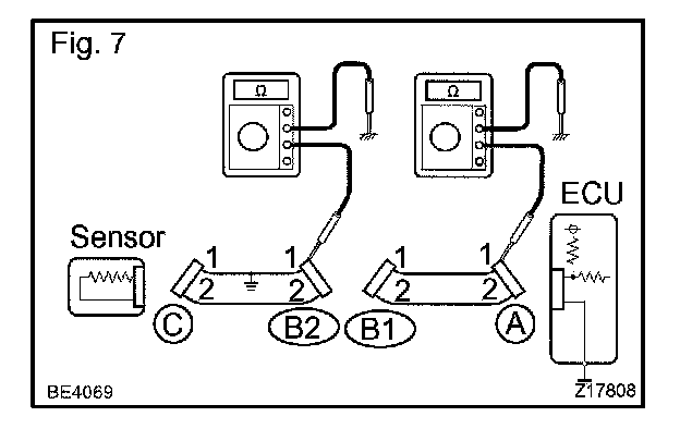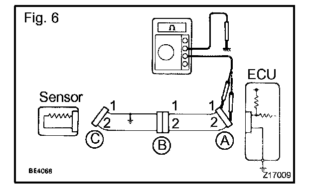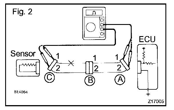 1. Disconnect connectors A and C and measure the resistance between them.