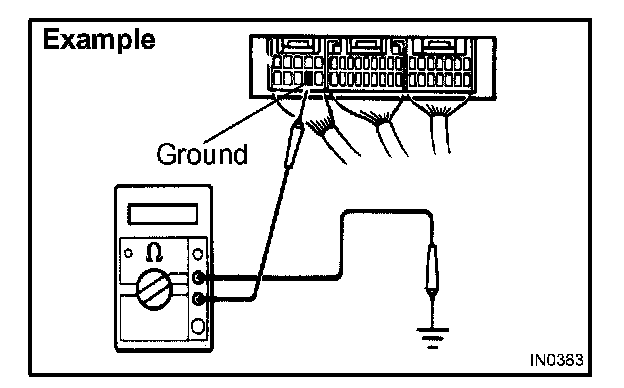 1. Measure the resistance between the ECU ground terminal and body ground.
