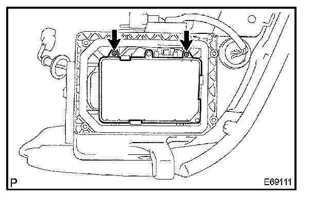 a. Remove the 2 screws and disconnect the sub-assy headlamp light control ECU RH.