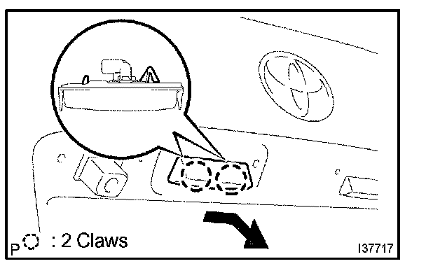a. Release the 2 claw fittings and disconnect the license plate lamp assy as shown in the illustration.