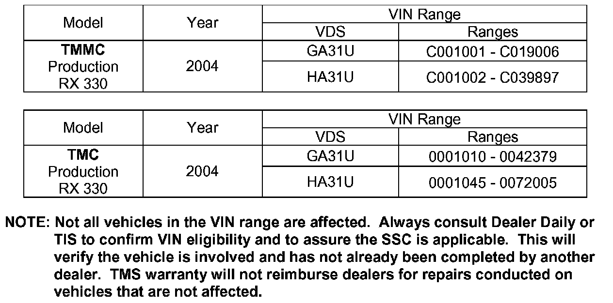 II. IDENTIFICATION OF AFFECTED VEHICLES
