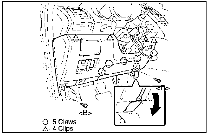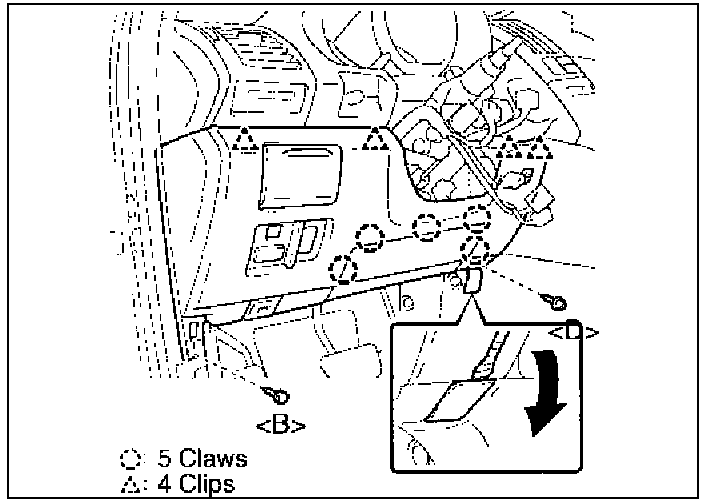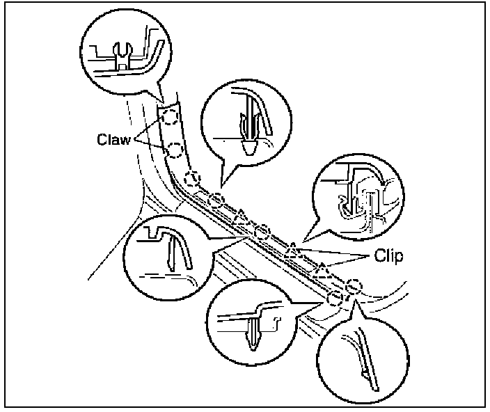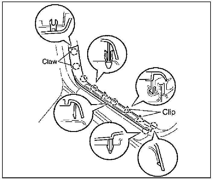 (a) Using the nylon pry tool, disengage the 7 claws and 3 clips.