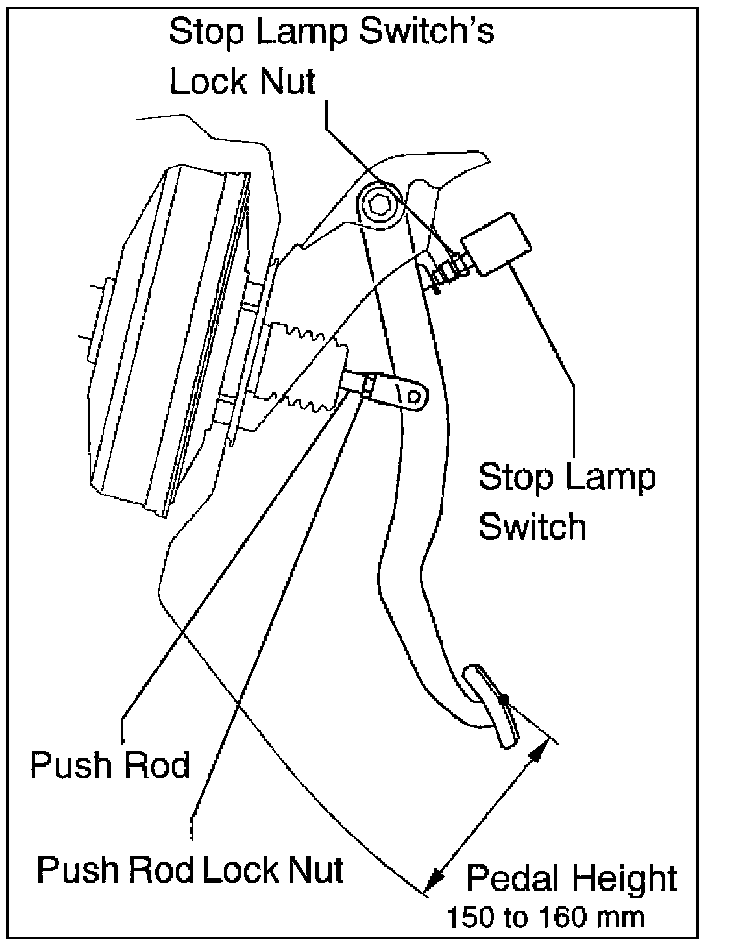 ^ If the height is not between 150 mm and 160 mm, proceed to Step b, adjust the brake pedal height.