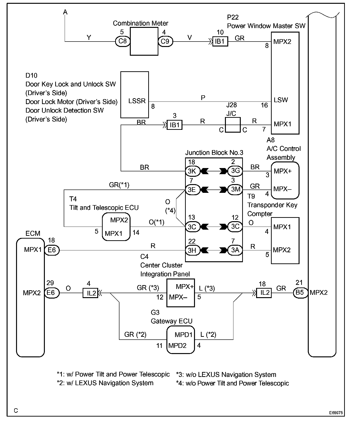 This circuit detects the state of the door lock detection sensor and send it to the multiplex network body ECU.