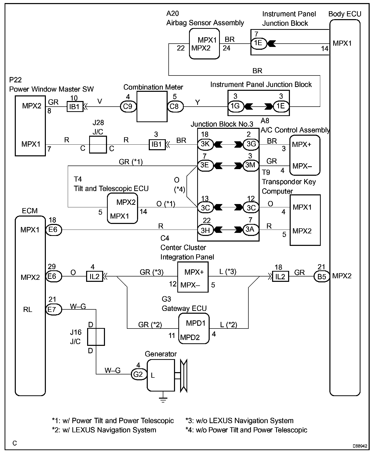 The multiplex network body ECU receives engine condition (ON or OFF) by generator signal.