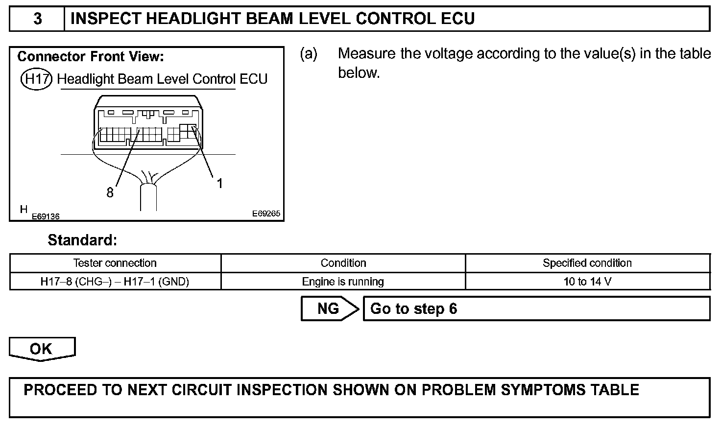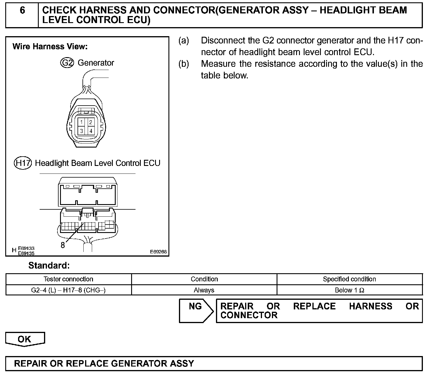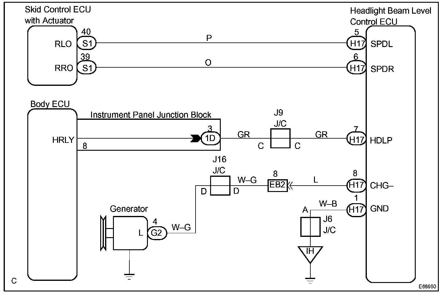 Headlight beam level control ECU receives the vehicle speed signal from the skid control ECU, and engine condition from the generator assy.