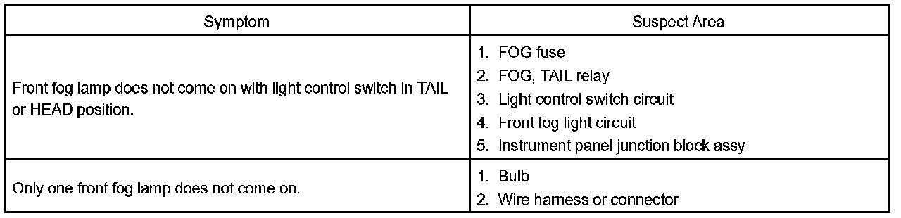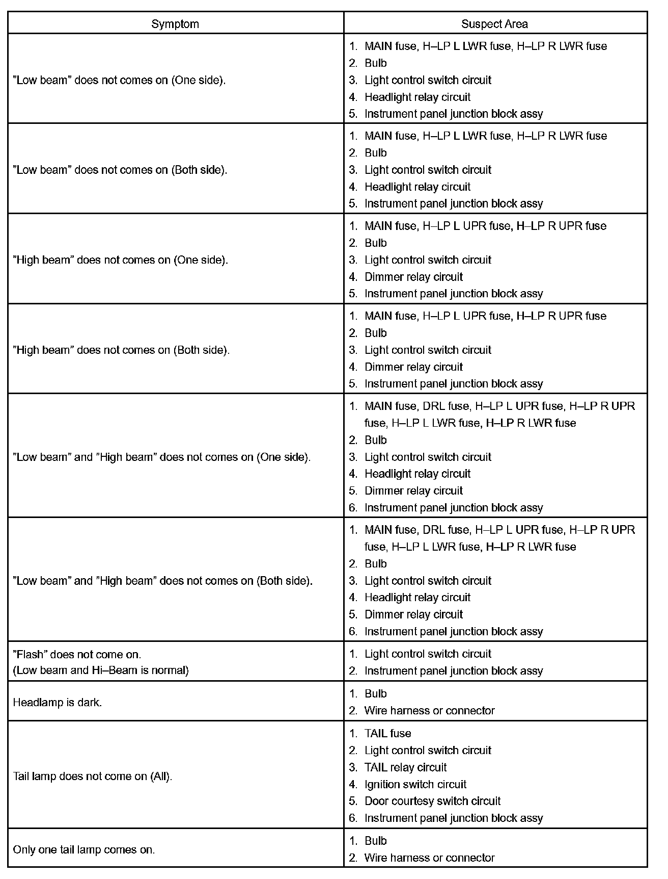 Problem Symptoms Table - Headlamp And Tail Lamp System Part 2: