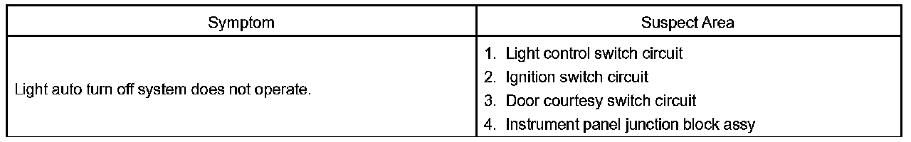 HINT: Proceed to troubleshooting of each circuit in the table given.