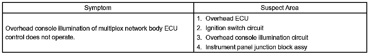 Problem Symptoms Table - Overhead Console Illuminated System: