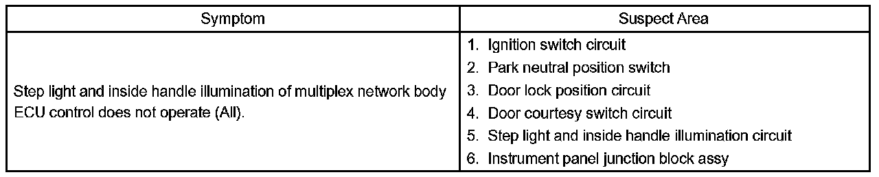 Problem Symptoms Table - Step Light And Inside Handle Illumination System: