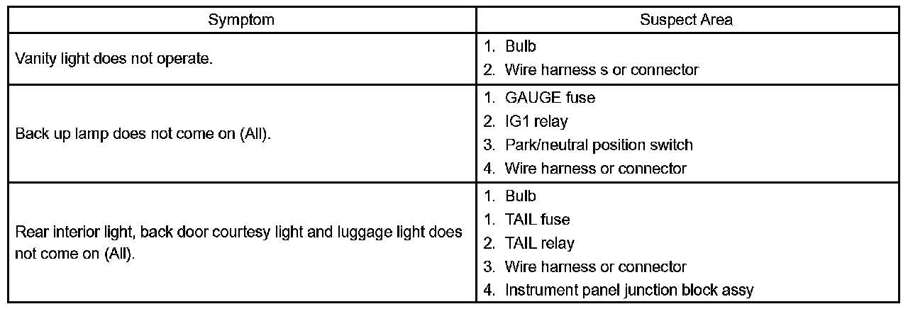 PROBLEM SYMPTOMS TABLEProblem Symptoms Table - Headlamp And Tail Lamp System Part 1: