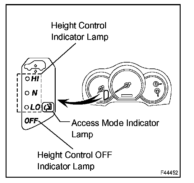 2. Check that the height control OFF indicator lamp, height control indicator lamp and the access mode indicator lamp come on for 2 sec.