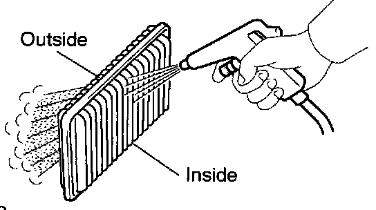 c. Clean the filter with compressed air. First blow from the inside thoroughly, and then blow from the outside of the filter.
