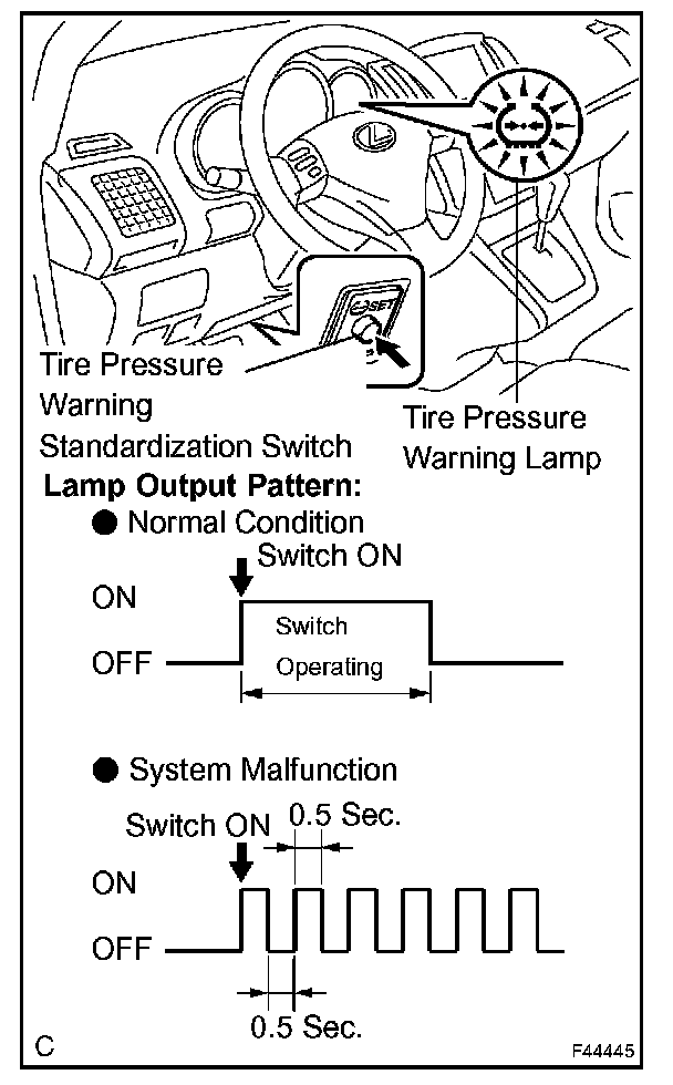 - When the tire pressure warning system has any problem, the tire pressure warning lamp blinks at 0.5 seconds interval.