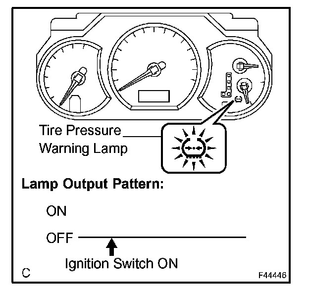e. Check that the tire pressure warning lamp comes on.
