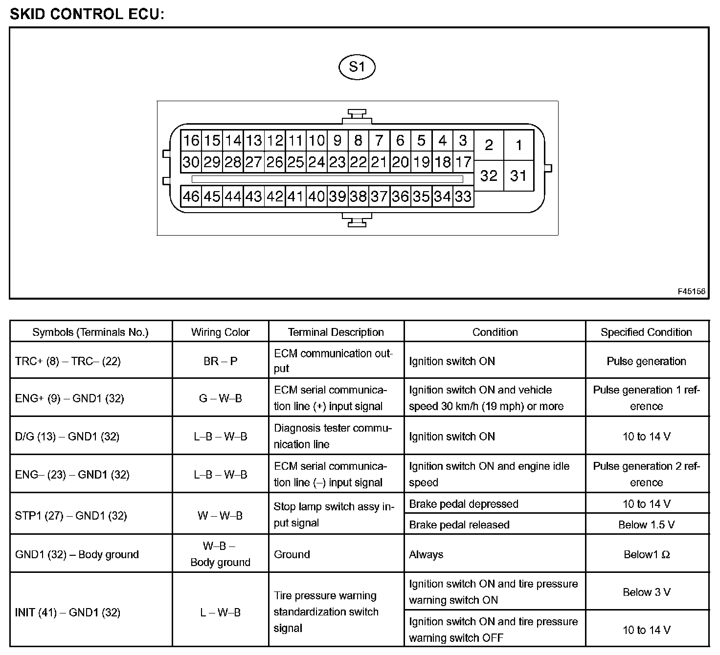 Terminals Of ECU/Pinouts - Skid Control ECU: