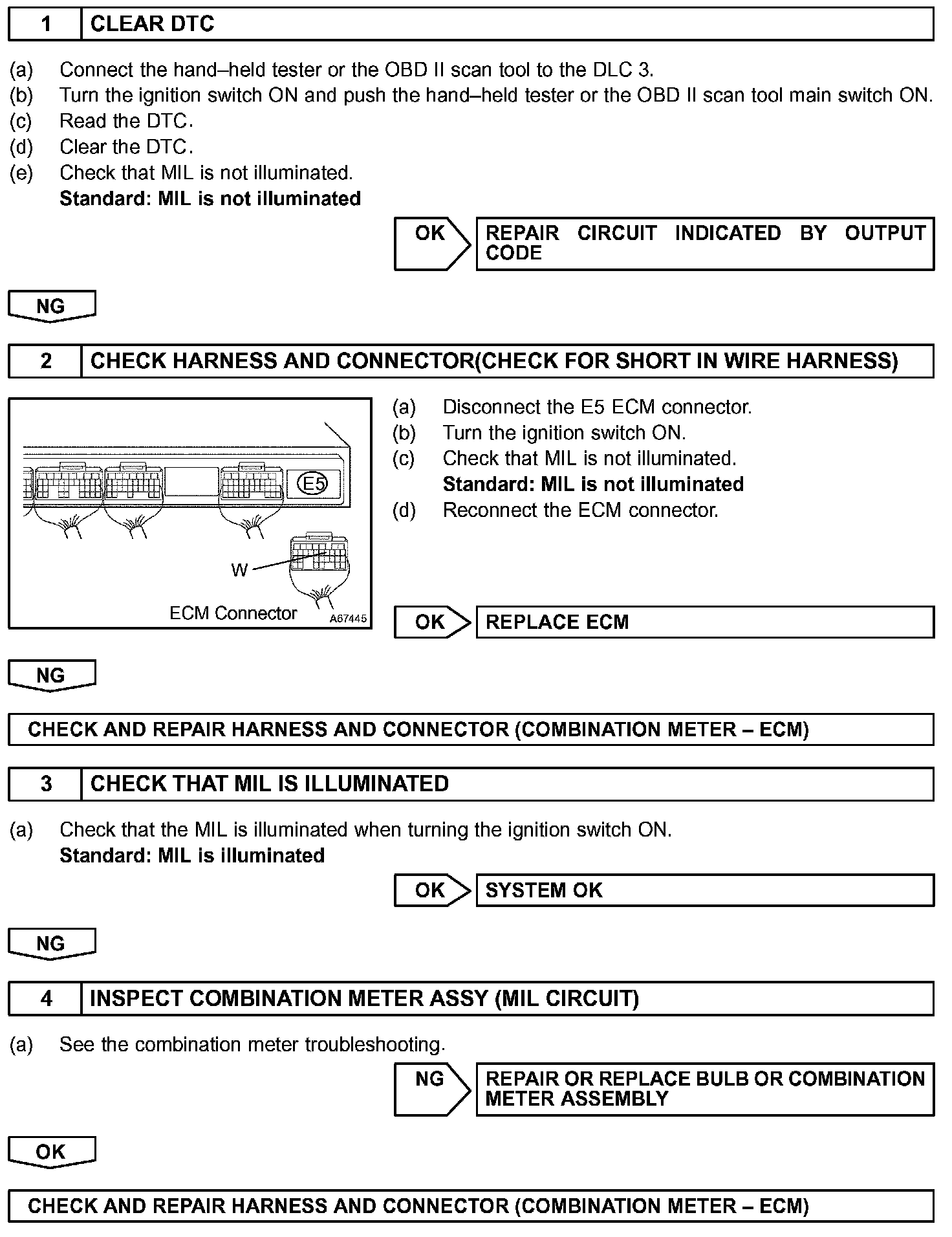 MIL operation is checked visually:
