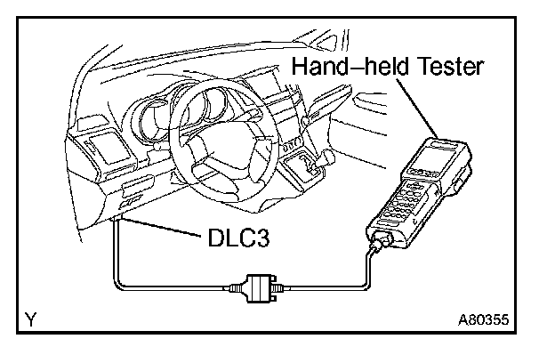 1. Connect the OBD II scan tool or the hand-held tester to the DLC3.