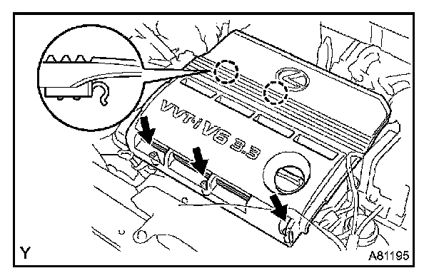 b. Remove the fuel vapor feed hose from the 2 hose clamps.