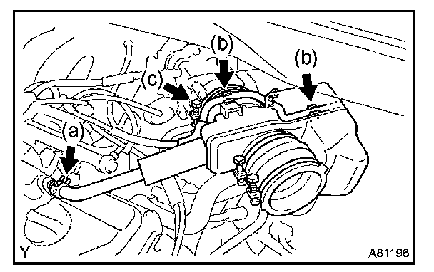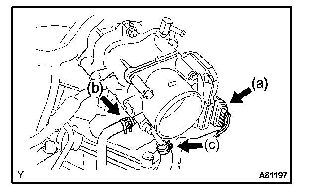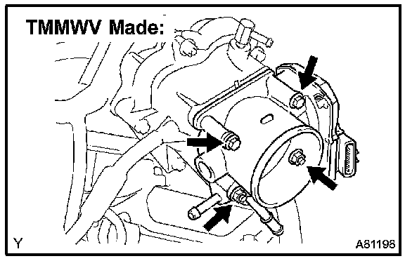 1. Remove the 2 bolts and 2 nuts, and then remove the throttle body.