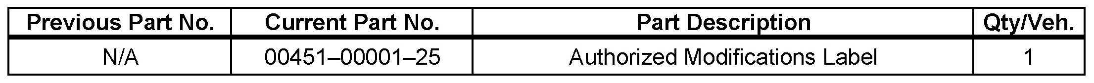 9. Enter the required information on the Authorized Modifications Label and affix it to the vehicle at the location shown in Figure 1. The Authorized Modifications Label is available through the PDC, P/N-00451-00001-25