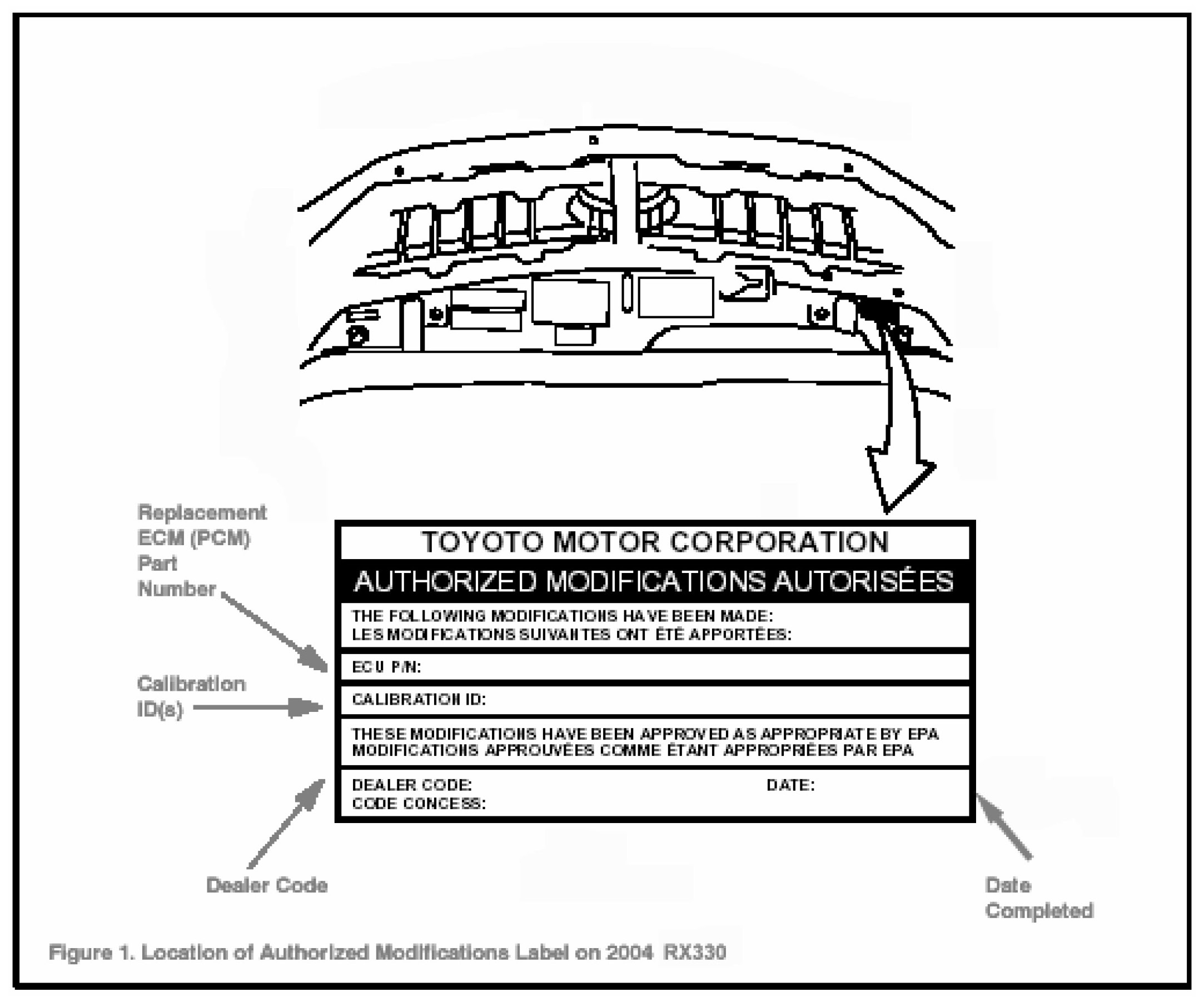 - Before proceeding, verify the ECM (PCM) calibration has NOT been updated by checking for the Authorized Modifications Label (shown in Step 1 of the Repair Procedure).