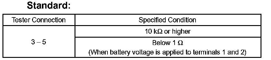 If the result is not as specified, replace the relay assy.